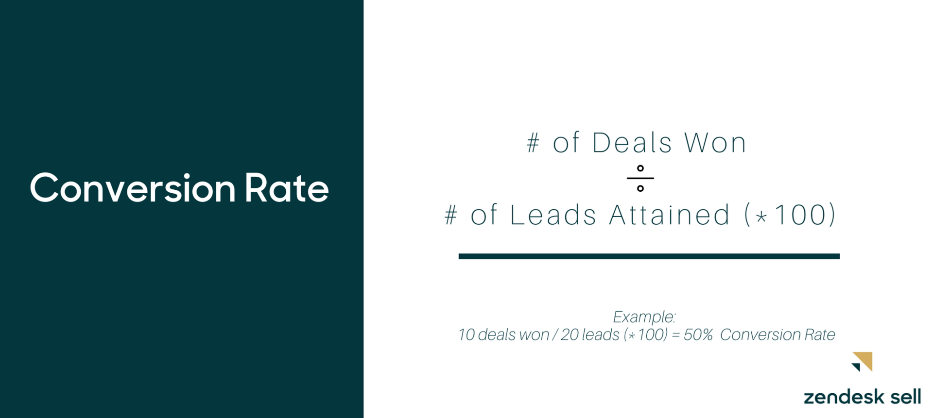 Conversion rate calculates the number of deals won compared to total leads attained. The formula for calculating the conversion rate is as follows: