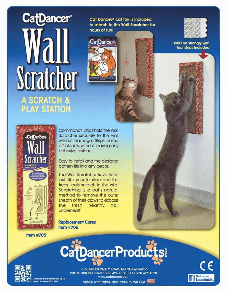 This is a product sell sheet for a new wall scratcher from Cat Dancer Products Inc.ⓒ There are several aspects that make this sell sheet successful: