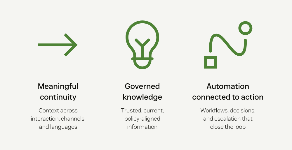 Effective AI retains and applies the right context across interactions, languages, channels, and time. Not every detail, but the information that shapes decision-making.